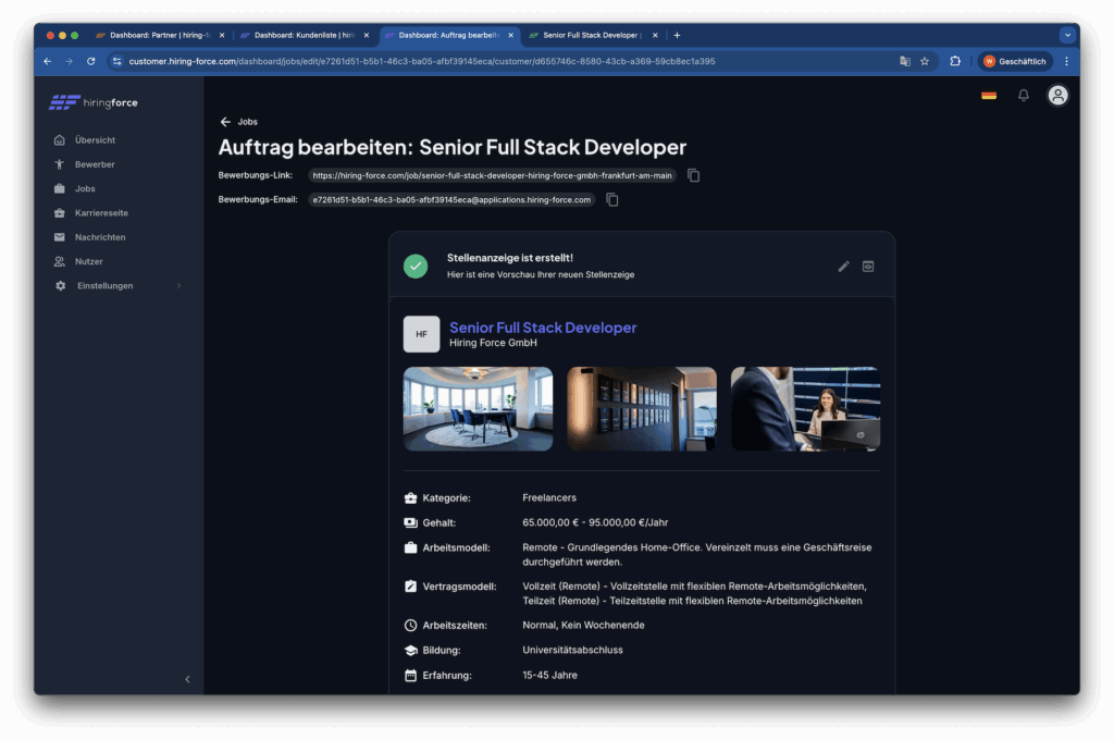 Wichtiger Hinweis: Hiring Force arbeitet exklusiv mit ausgewählten Partnern zusammen. Die Anzahl der Partner ist begrenzt und wir erhalten kontinuierlich Anfragen von weiteren Partnern. Registriere Dich jetzt kostenfrei, um Deinen Slot zu reservieren.